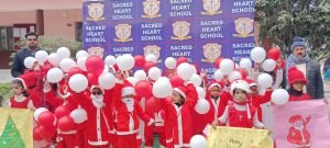 निचलौल। शहर स्थित सेक्रेड हार्ट सीनियर सेकेंडरी स्कूल में आज धूमधाम से क्रिसमस का पर्व मनाया गया। इस दौरान प्री प्राइमरी व प्राइमरी के छात्र व छात्राओं ने क्रिसमस पर्व पर सेंटा क्लाज के परिधान में सभी को शुभकामनाएं दी। इतना ही नहीं टॉफी और उपहार बांटे गए।