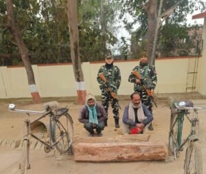 दरअसल यह पूरा मामला भारत नेपाल सरहद से सटे भरवलिया चंदन नदी बांध की है। जहां पर सुरक्षा एजेंसियों की टीम मुखबिर की सूचना पर चोरी की साखू लकड़ी के साथ आरोपी रामदरश चौहान निवासी बोदना और देवी शरण यादव निवासी बसंतपुर थाना ठूठीबारी को गिरफ्तार कर ली। दोनों आरोपियों ने टीम के पूछताछ में अपना नाम बताते हुए बताया कि वह लोग चोरी की लकड़ी को नेपाल ले जाकर महंगे दाम में बेच मोटी रकम कमाने के फिराक में थे। फिलहाल एक आरोपी देवी शरण यादव तो वर्तमान में गांव में चौकीदार के पद पर तैनात है। फिलहाल टीम मामले में आगे की कार्रवाई करने में जुटी हुई है।