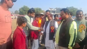 खिलाड़ियों से परिचय लेते मुख्य अतिथि