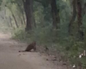 सड़क पर बैठा तेंदुआ