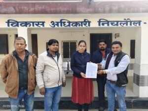 बीडीओ को पत्र देते मनरेगा कर्मी