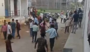 मारपीट करते उपभोक्ता और गैस कर्मी